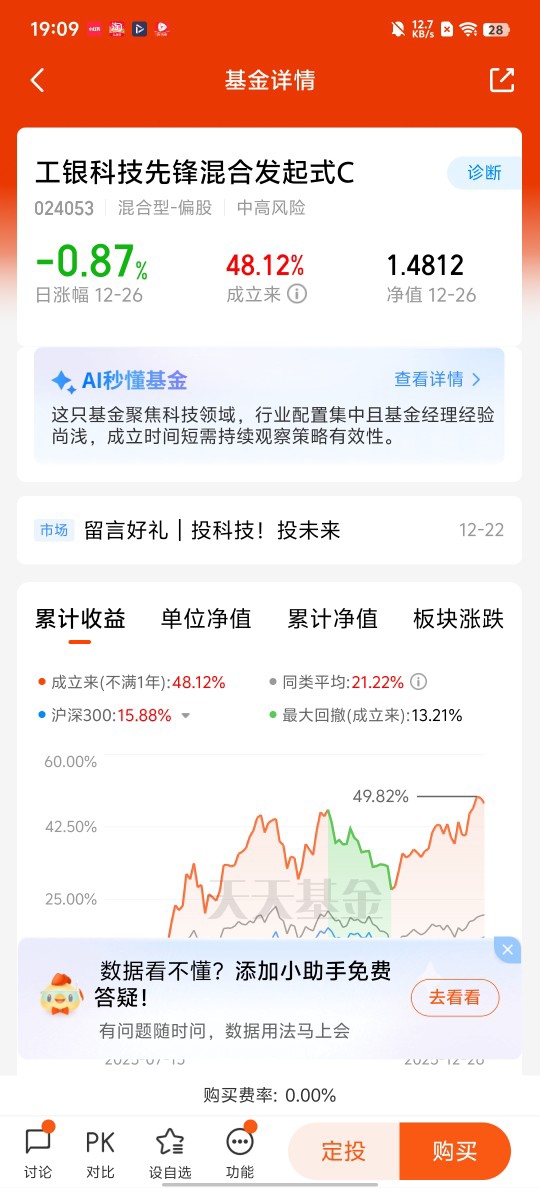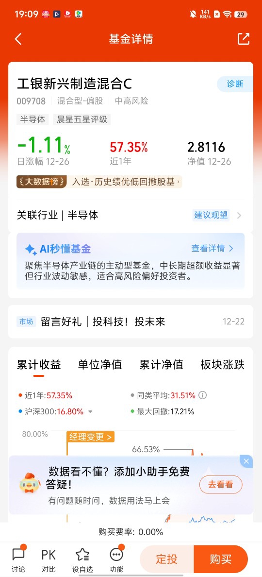$工银新兴制造混合C$主投半导体,人工智能,物联网等新兴产业,发展潜力很大!所以