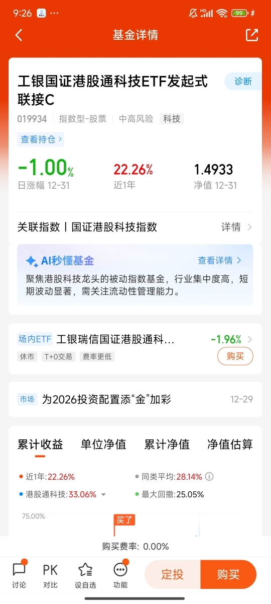 再者,作为C类基金,它的赎回费率极低,资金流动性极强,非常适合我这种打算长期持有、同时又想在市场波动中灵活加仓的投资者。不用承担过高的交易成本,既能长期坚守核心布局,又能在基金净值回调、估值回归合理区间时,果断加大仓位,摊薄持仓成本,实现“低成本布局,高成长收益”的投资目标。