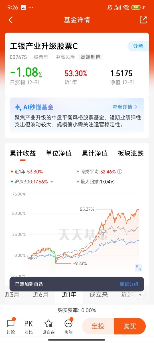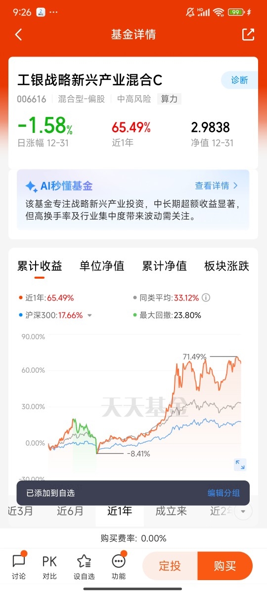 说到这里,我心里难免有一丝遗憾——我介入这只工银新兴制造混合C的时机,还是晚了一些。在它前期净值稳步攀升、慢慢兑现成长收益的阶段,我还在其他赛道反复试错,等到我彻底看清它的投资价值,果断入手时,它已经走出了一段不斐的涨幅,没能拿到最丰厚的底部收益,这无疑是我2026年投资路上的一点小遗憾。