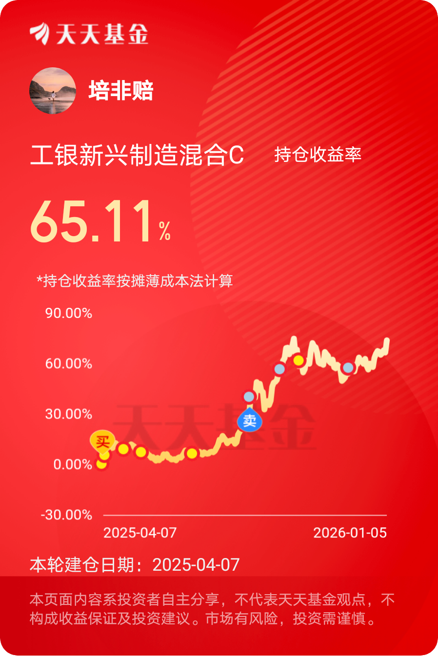 二、工银基金是投资科技的最优解。我相信专业的人做专业的事,所以通过买基金投资科技,工银基金公司的科技型基金是我们基民投资科技的最优解。工银基金公司构建了平台化投研、专业化分工、长期化布局的体系,科技型基金管理团队投研扎实深入,目光敏锐前瞻,风控能力出色。科技型基金表现很优秀。因为我从2022年就持有张宇凡经理管理的工银物流产业股票基金,该基金非常优秀,令人信赖。我在2024年12月14日就毫不犹豫的开始申购由张宇凡、玛丽娜两位管理的$工银新兴制造混合C$,感觉非常好!2025年1月26日,经理张宇帆卸任,由玛丽娜经理管理。因担心经理玛丽娜管理不好,在2025年2月13日全部赎回了该基金,准备申购其他公司的科技型基金。但众里寻“基”千百度,发现还是$工银新兴制造混合C$好。于是在2025年4月7日重新申购该基金,持有至今,体验很好!#晒收益#