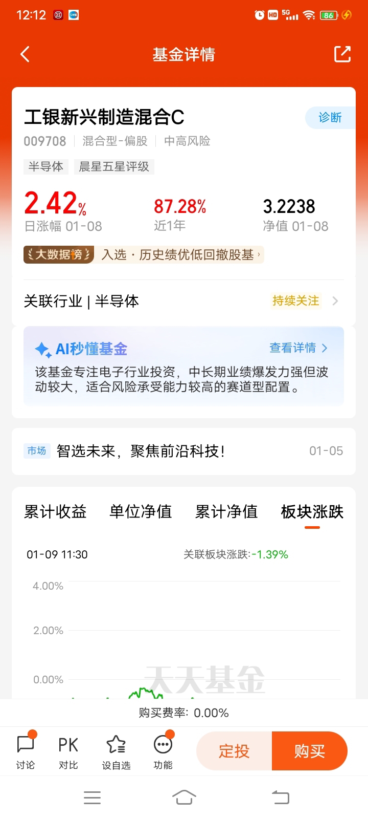 我特别看好$工银新兴制造混合C$,这只聚焦电子和半导体领域的基金,正好踩中了我长