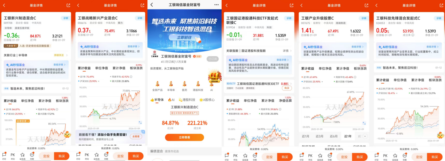 投研团队支持:工银瑞信基金作为头部公募,资产净值超8800亿元,旗下基金492只,投研实力雄厚,为半导体投资提供深度研究支持。