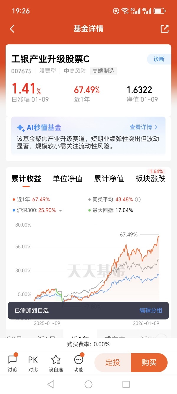 #投科技投未来#当前我国经济基本面逐步企稳回升,企业盈利改善的预期增强,叠加美国降息周期开启带来的全球流动性宽松,科技板块的热度有望持续。科技产业不仅是经济转型升级的核心动力,也是政策重点扶持的方向,从AI技术突破到半导体国产替代,再到新能源技术创新,产业升级的浪潮为科技股提供了长期增长空间。在具体投资标的上,我看好工银新兴制造混合、工银国证港股通科技ETF、工银产业升级股票和工银战略新兴产业混合。工银新兴制造混合由马丽娜管理,聚焦半导体和AI产业链,2025年三季度重仓中芯国际、海光信息等龙头,精准捕捉了国产替代和算力需求爆发的红利。基金经理通过动态调整持仓结构,在行业波动中展现出较强的控回撤能力,近一年年化收益率达85.72%,远超同类产品。工银国证港股通科技ETF则提供了布局港股科技龙头的便捷工具。港股市场经历深度调整后,腾讯、阿里等企业估值处于历史低位,叠加美国降息对成长股的提振,港股科技板块具备估值修复和盈利改善的双重逻辑。该ETF跟踪国证港股科技指数,覆盖互联网、半导体、生物医药等赛道,分散风险的同时捕捉行业轮动机会。工银产业升级股票重点投资材料与高端制造领域,如第三代半导体、新能源材料等,契合“技术突破+国产替代”的产业趋势。基金经理杜洋团队通过深耕产业链上下游,挖掘出巨化股份、源杰科技等优质标的,2025年三季度净值增长率达44.76%,体现了对细分领域景气度的精准把握。工银战略新兴产业混合则侧重TMT和AI应用端,重仓新易盛、中际旭创等光模块龙头,同时布局腾讯、恺英网络等泛科技标的。基金经理夏雨和马丽娜的组合兼顾价值与成长,在AI商业化落地加速的背景下,基金近一年年化收益率达76.2%,超额收益显著。综合来看,这四只基金覆盖了科技板块的硬件、软件、材料及应用全链条,既能享受产业升级的红利,又能通过主动管理降低波动。美国降息带来的流动性改善和国内基本面回暖,将进一步强化科技股的估值支撑。我会将这四只基金作为核心配置,长期持有以分享科技革命的红利。