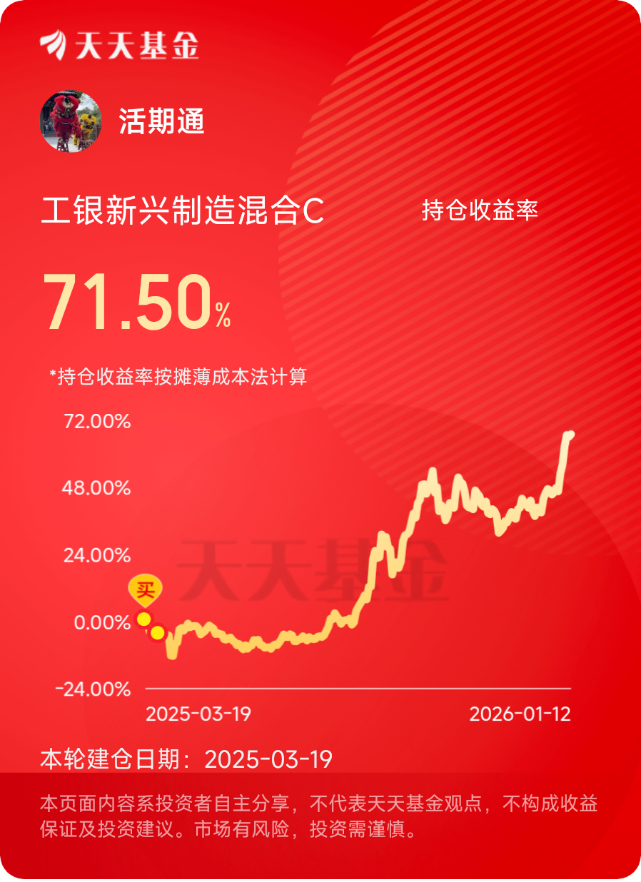 我非常看好科技赛道,特别是半导体板块,我长期持有$工银新兴制造混合C$ ,获得丰厚回报。