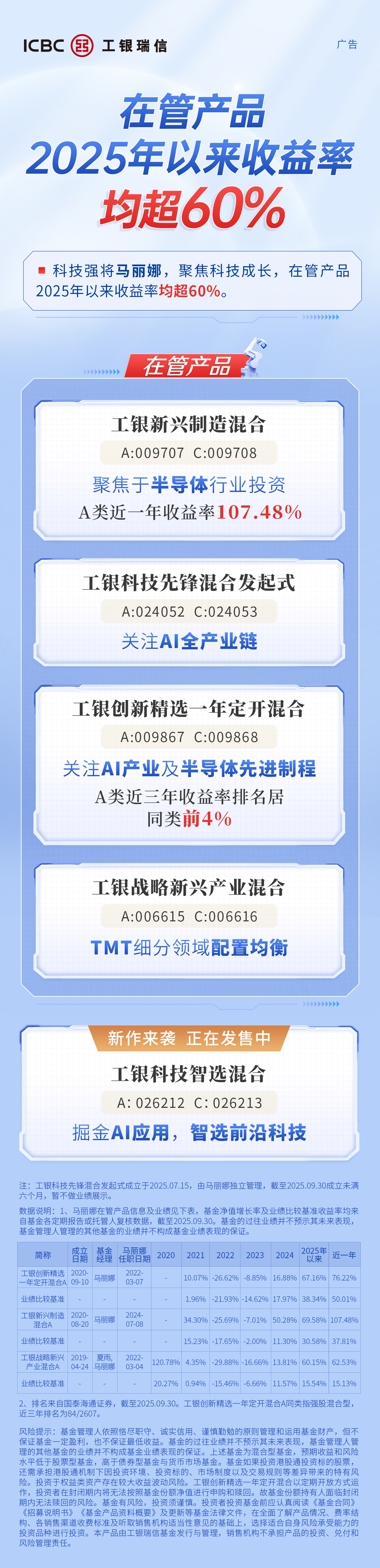 科技强将马丽娜,在管产品2025年以来收益率均超60%!