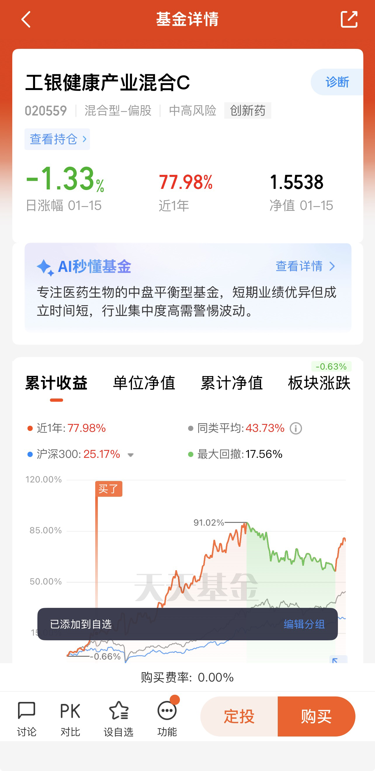 该基金以“政策+技术双轮驱动,A+H双城布局”为核心,聚焦健康产业优质标的,在控制风险的前提下分享行业成长红利,核心逻辑可概括为以下三点: