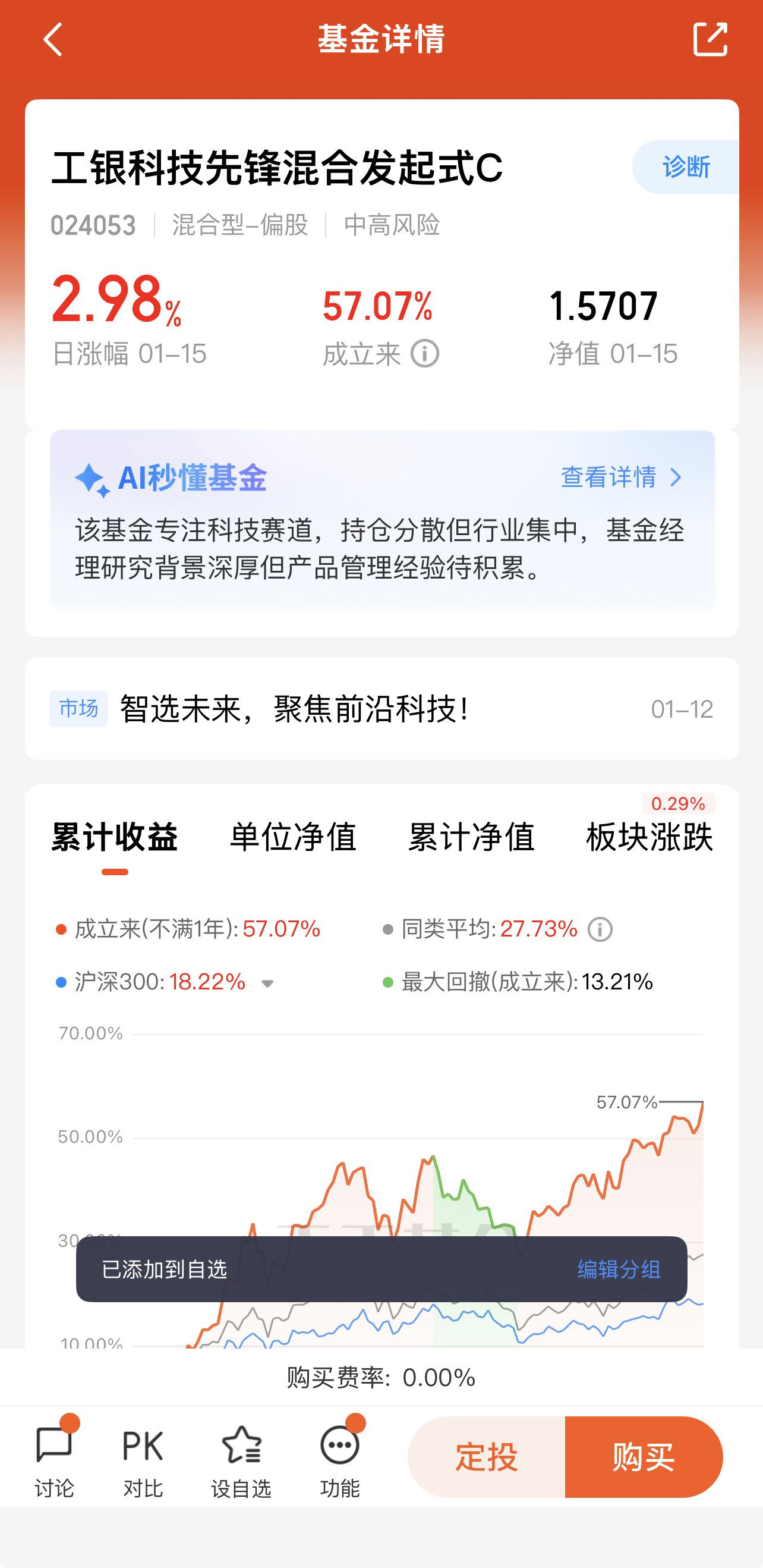 基金成立以来累计收益达195.83%,近一年收益82.21%,大幅跑赢同类平均与沪深300指数,体现出强劲的盈利能力。当前持仓板块虽经过阶段性上涨,但受益于AI算力需求持续增长、国产替代进程加速等长期逻辑,核心标的仍具备估值重塑空间,适合看好科技制造赛道的长期投资者配置。
