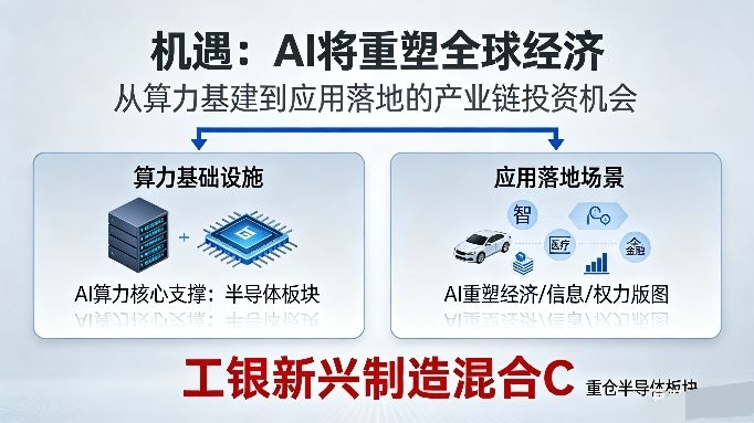 AI已经不仅仅是一种工具,它正在重塑全球经济、信息与权力版图。从算力基础设施到应用落地,AI产业链将催生巨大的投资机会。工银新兴制造混合C重仓的半导体板块,正是AI算力的核心支撑。