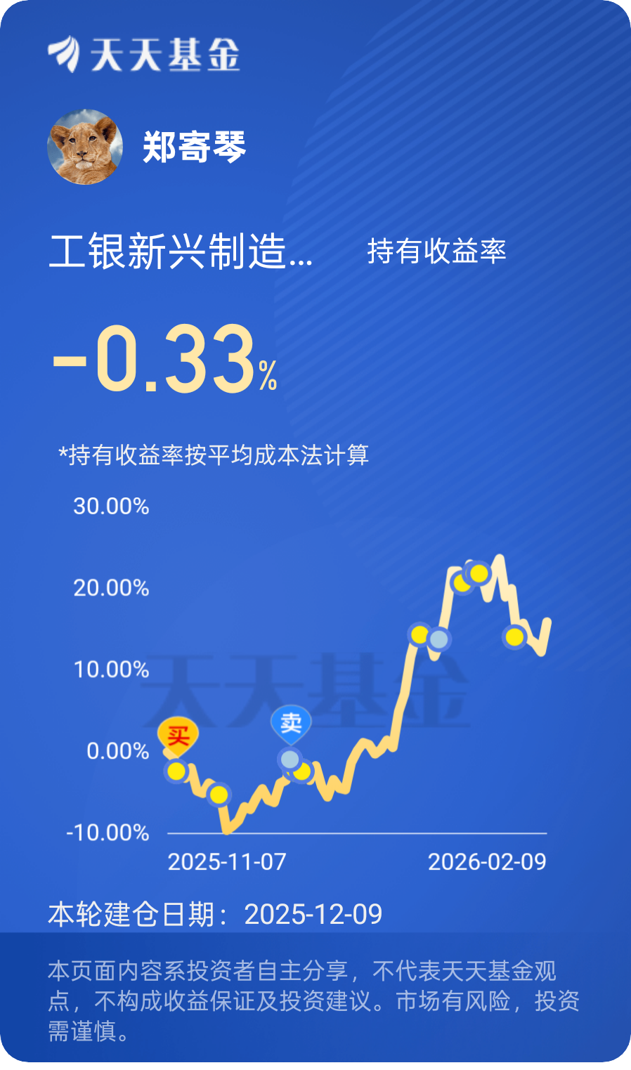 基于这样的判断,我经过多方对比筛选,目前持有工银瑞信基金旗下的$工银新兴制造混合C$ 。对普通投资者而言,我们没有精力去研究单只半导体个股,选择一只优质基金省心又稳妥。这只基金重仓布局了中芯国际、海光信息等优质半导体标的,精准贴合我看好的半导体投资主线。