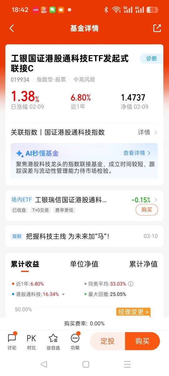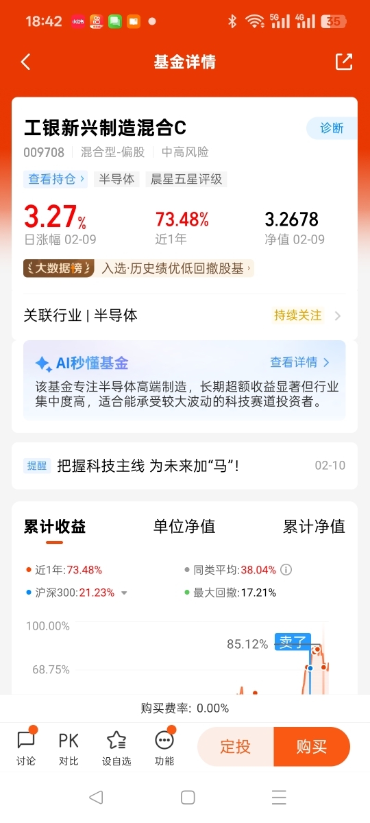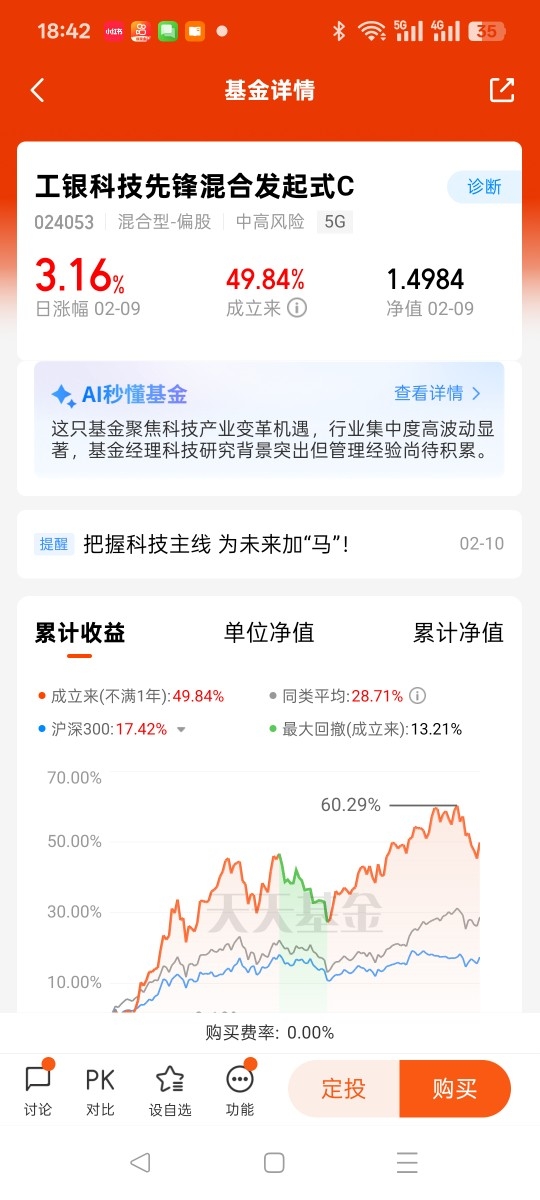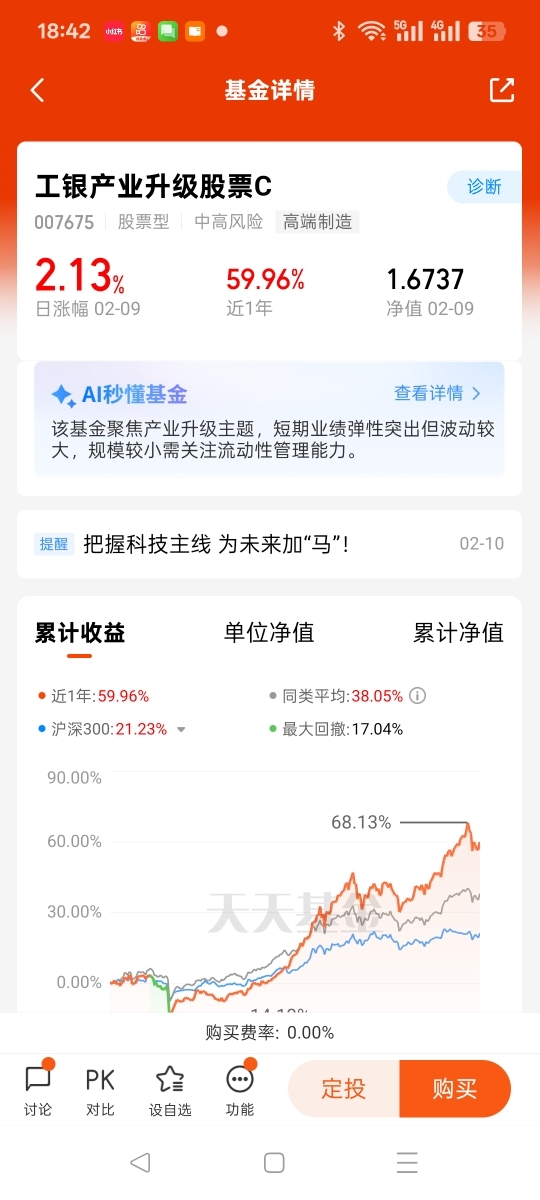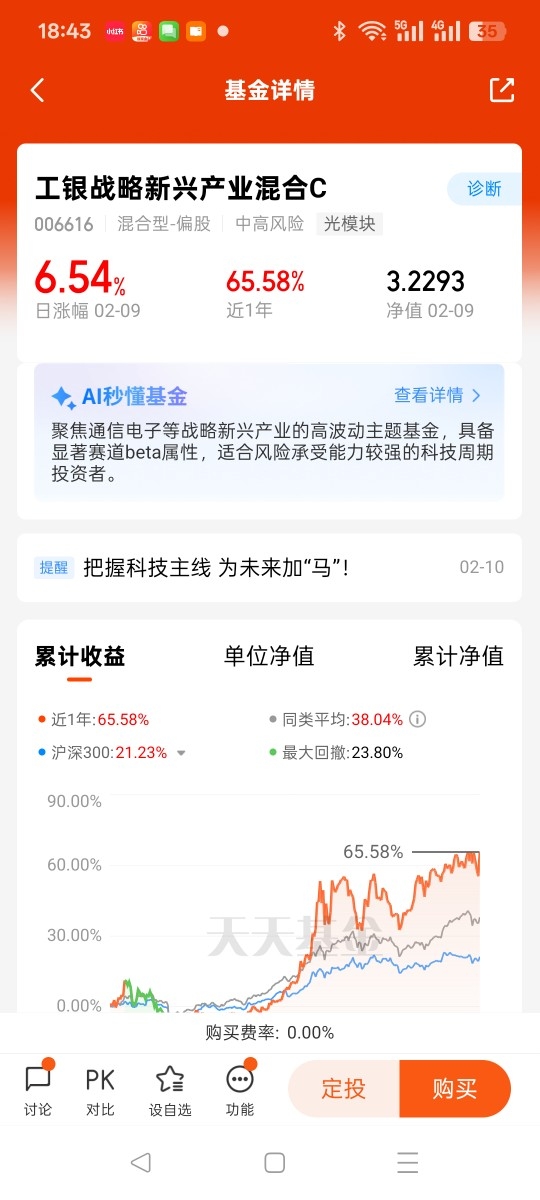 从持有体验来看,这只基金表现亮眼,2月9日单日涨幅达3.27%,近6个月涨幅更是高达70.92%,远超我的预期。而且它属于中风险产品,波动相对可控,适合我们普通投资者长期持有、慢慢布局。对我来说,投资科技板块、持有这只基金,不是追求短期暴涨,而是跟着行业趋势走,分享科技发展和国产替代带来的长期收益,这也是我作为普通投资者最稳妥的投资选择。@工银瑞信基金