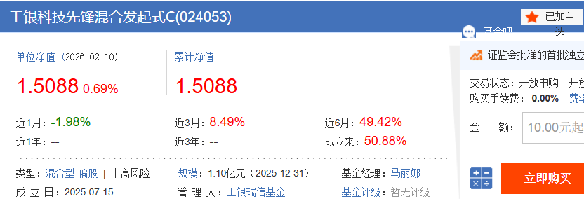 如果你坚定看好科技主线,想纯仓布局,抓行情爆发力,首选:工银科技先锋混合发起式 C(024053)
