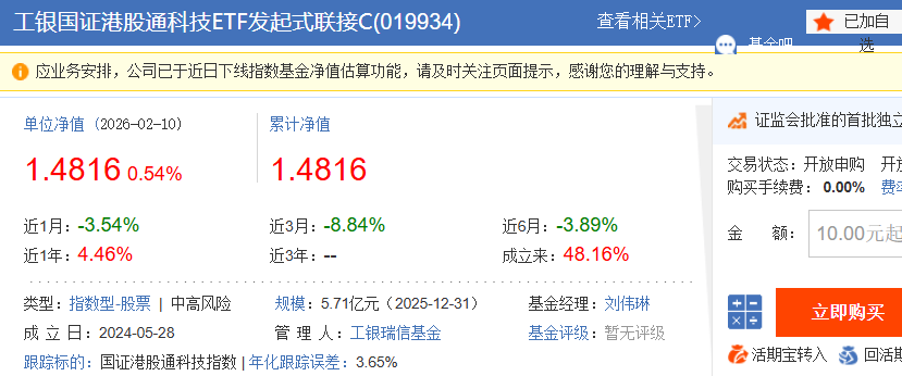 2.6 工银国证港股通科技 ETF 联接 C(019934):布局港股科技洼地的指数利器