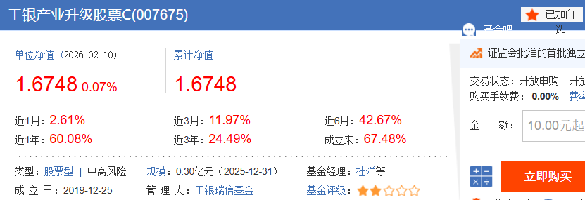 如果你想最大化把握产业升级行情,追求高弹性,首选:工银产业升级股票 C(007675)