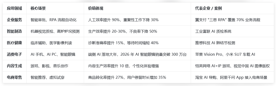 2026 年被公认为AI 应用商业化元年,全球 AI 产业正式迈入规模化落地关键年: