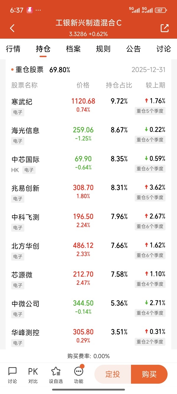 1. 纯粹性。 很多基金打着“科技”旗号,持仓里却混着白酒、医药。工银新兴制造不一样——2025年中报显示,电子行业占股票投资市值比高达98.46%。我要的,就是这种知行合一。
