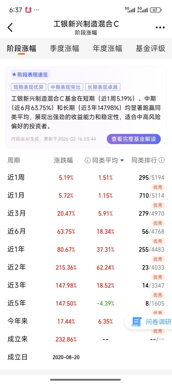 熟悉我的宝子都知道,我的风格从来不是“一把梭哈”,而是用脑子管钱,用耐心养资产。今天想和大家聊聊一只我观察了很久、也终于决定下手的基金——工银新兴制造混合C(009708)。这不是一篇枯燥的招募说明书复述,而是一个普通攒钱人对“科技赛道”的思考、选择,以及2026年的投资策略。