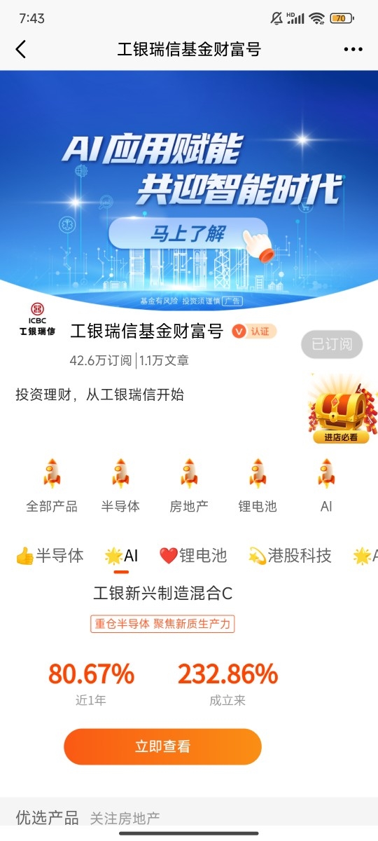 未来的日子里,愿我们都能保持对新技术的好奇、对实体经济的敬畏、对长期价值的坚守。不被短期波动干扰,不被市场情绪左右,跟着产业的脚步,跟着时代的方向,稳稳地走下去。AI点亮制造,制造成就未来,而我们,以理性与耐心,共享这场产业变革的长期果实。@工银瑞信基金