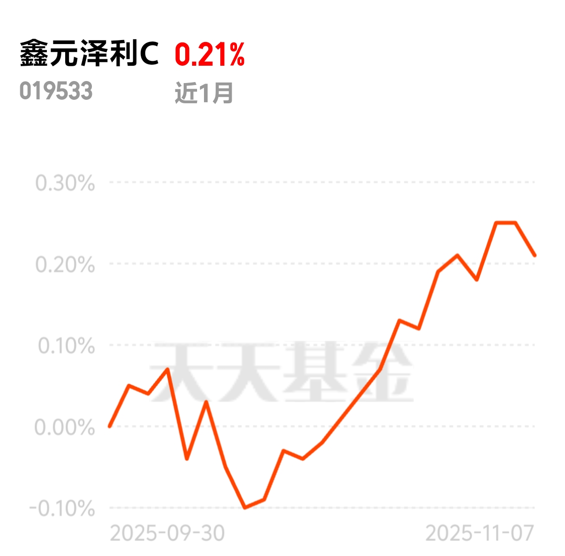 这段时间债市有涨有跌,但整体呈现稳中有进的态势,稳健类产品优势凸显。鑫元泽利债券C不负所望,近1个月收益0.21%,用稳定的表现回馈信任,是闲钱理财的靠谱伙伴。