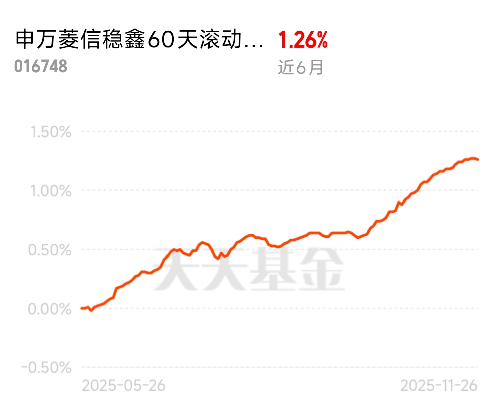 债券市场整体平稳,中短债因为久期适中抗波动强,成了稳健配置首选,申万菱信稳鑫60天滚动持有中短债债券A近6个月收益1.26%,业绩实打实,让理财更安心。