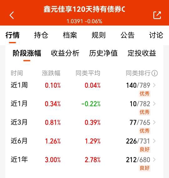 闭眼冲鑫元佳享120c近一年收益3%,适合新手短期投资,稳赚啊!$宏利中短债债券