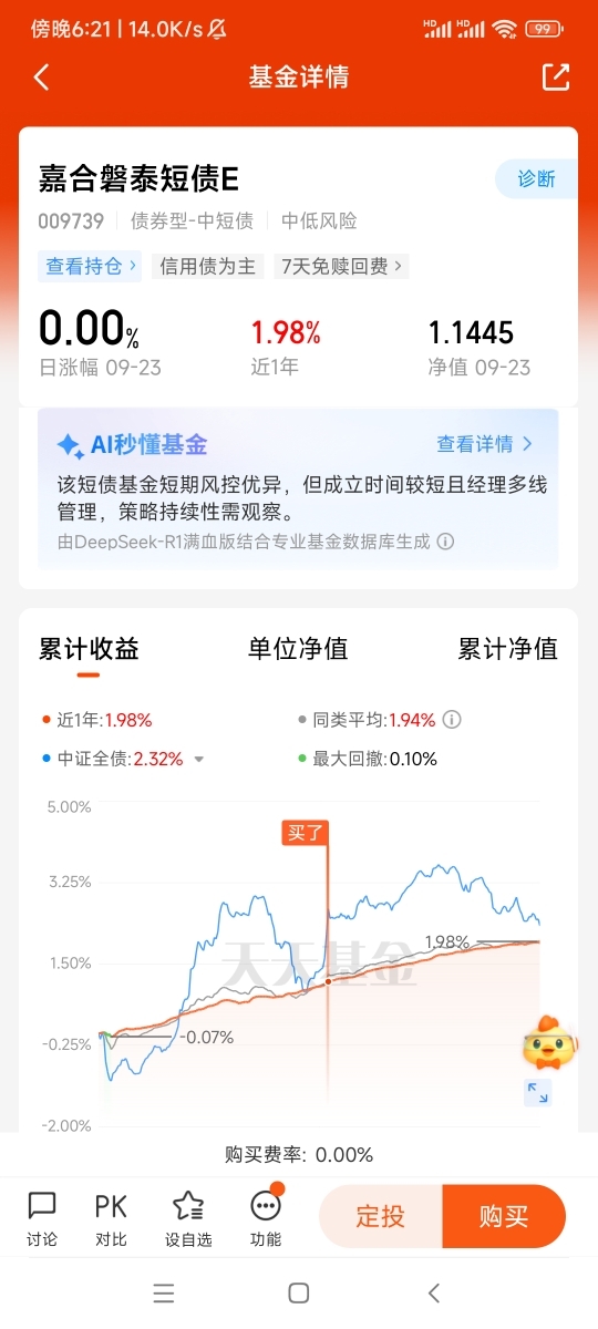 收拾行囊时,嘉合磐泰短债E的最新净值让人心定。它专注短债投资,不做信用下沉,近12个月波动仅1.98%,基金经理于启明靠高频交易定价严控风险,近三年最大回撤仅0.1%。7天免费赎回的灵活性,恰似旅行备用金的理想归宿,既能应对景区门票、特色餐饮等临时开支,又能稳稳增值,让我安心奔赴红色景区或海岛度假。
