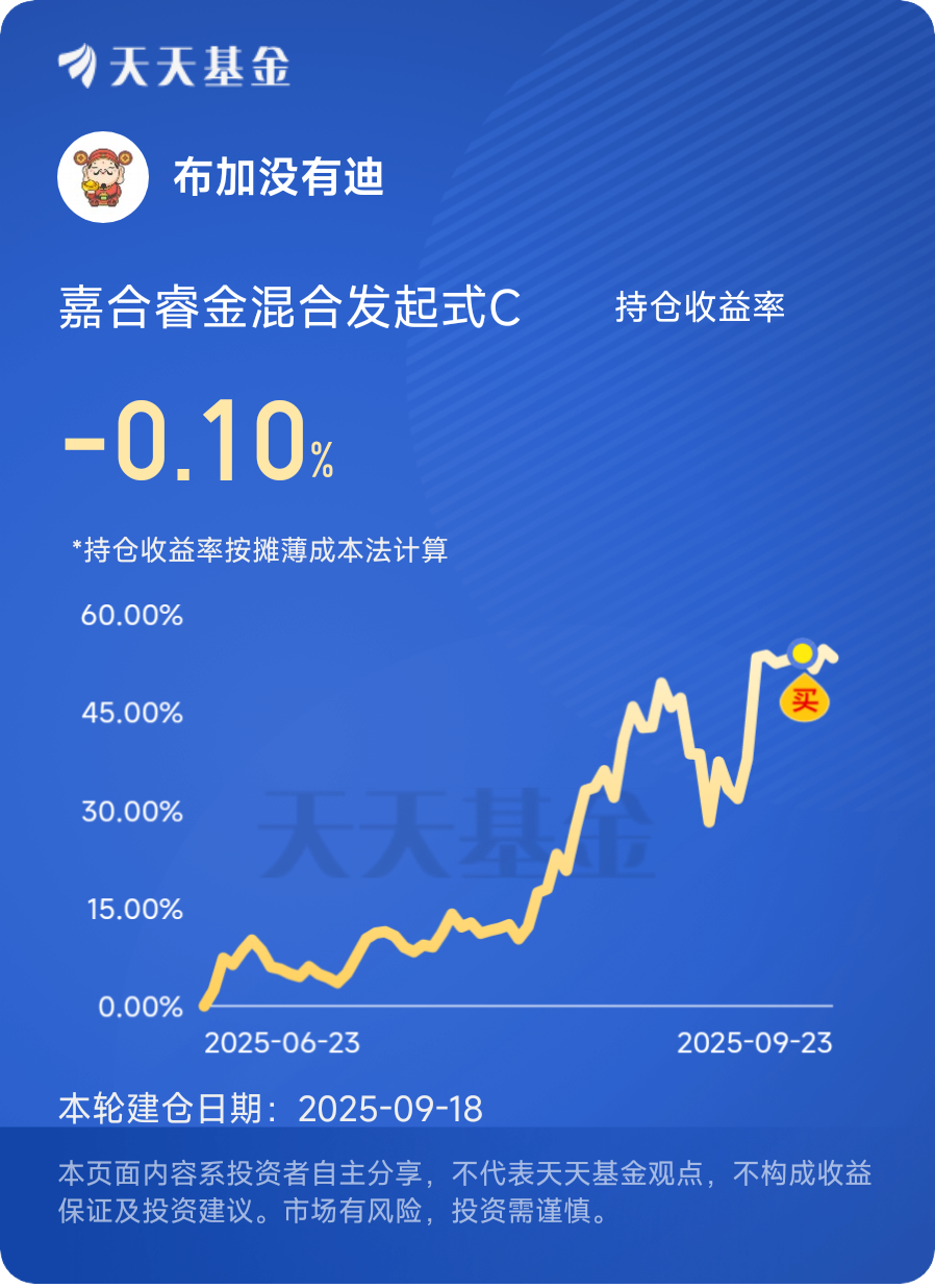 刷攻略时瞥见嘉合睿金混合发起式C的持仓更新,更添惊喜。其重仓的通信、电子等新质生产力板块 ,与假期见闻中跨境消费增长、智能景区设备普及的趋势完美呼应。作为中风险基金,它聚焦制造业与科技主线 ,在捕捉产业机遇的同时严控风险,如同错峰出游般避开市场“人潮”,收获优质体验。
