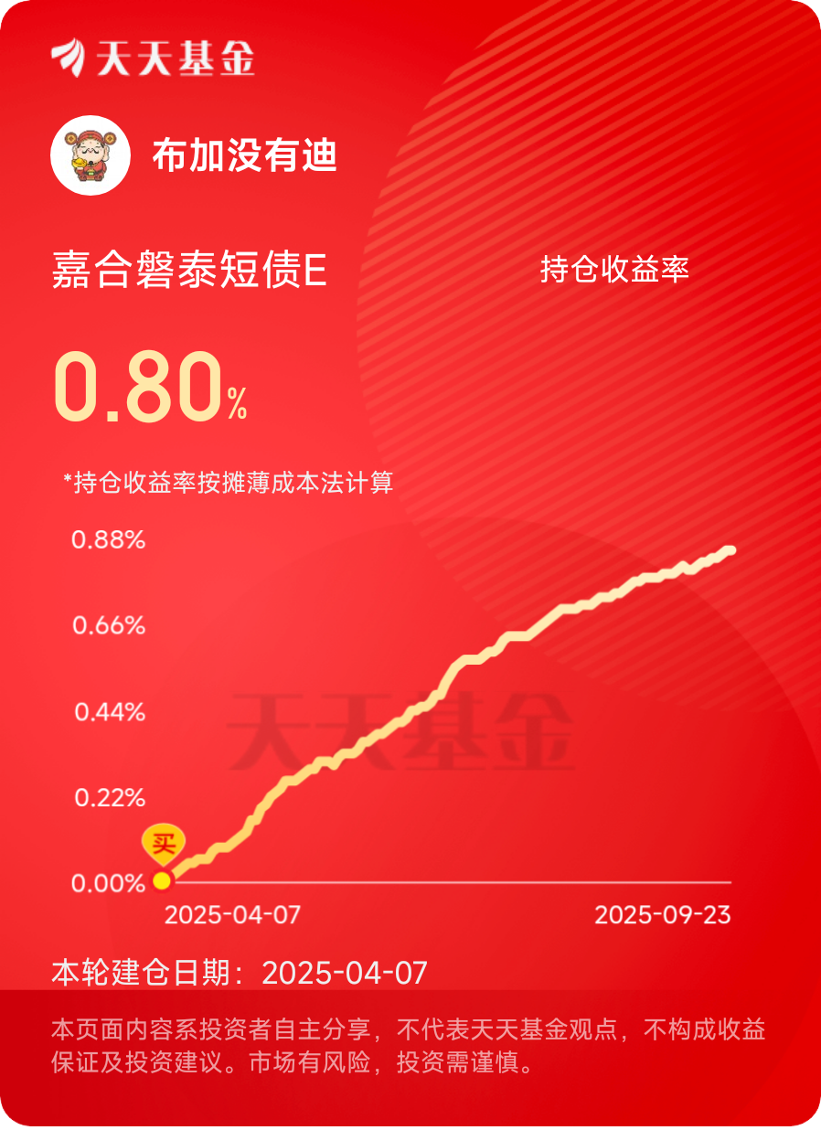 国庆假期的期待,一半是对“慢充式”出游的向往,一半源于持仓基金的踏实。看着火热出游的景象,规划行程时更觉手中$嘉合磐泰短债E$