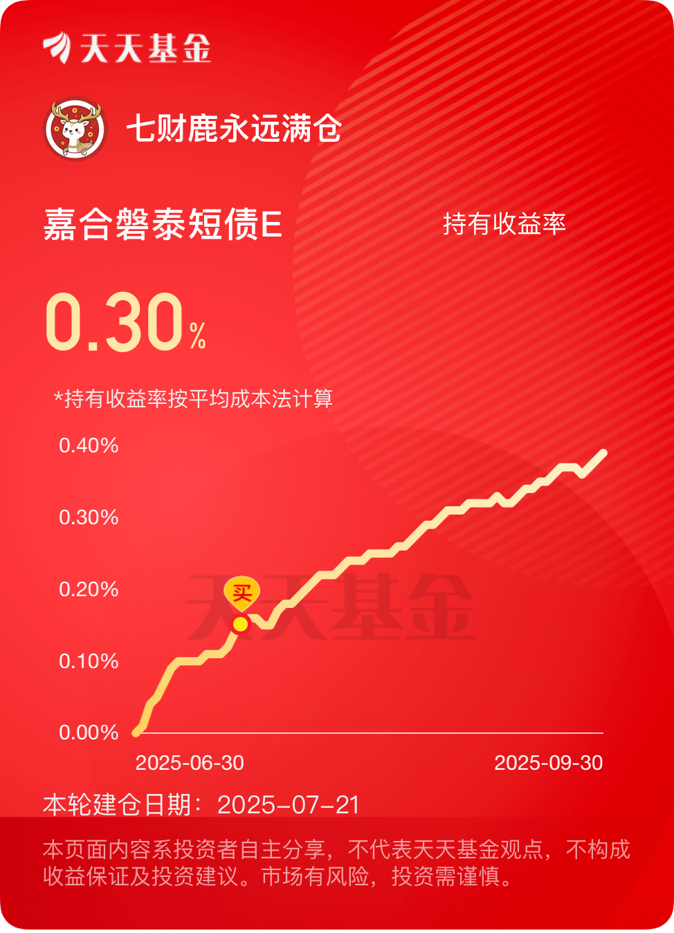 投资也是如此。与其追逐那些波动剧烈的热门板块,不如寻找一个能带来稳健收益的“避风港”。这也是我选择$嘉合磐泰短债E$ 的原因。