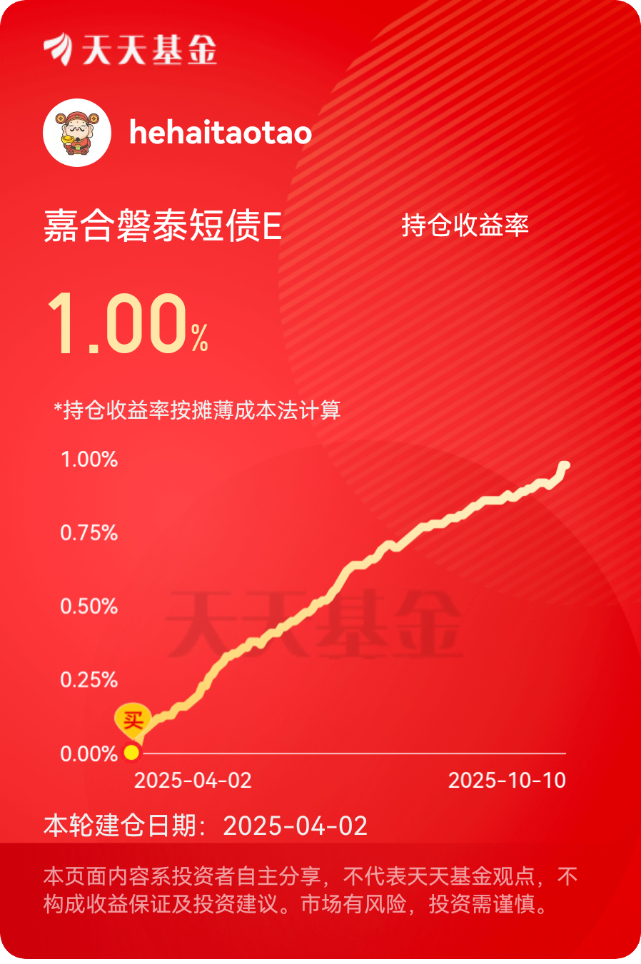 #分享国庆见闻,晒收益,瓜分好礼!# $嘉实中短债债券A$ $天弘安利短债A$ $东兴兴财短债债券C$