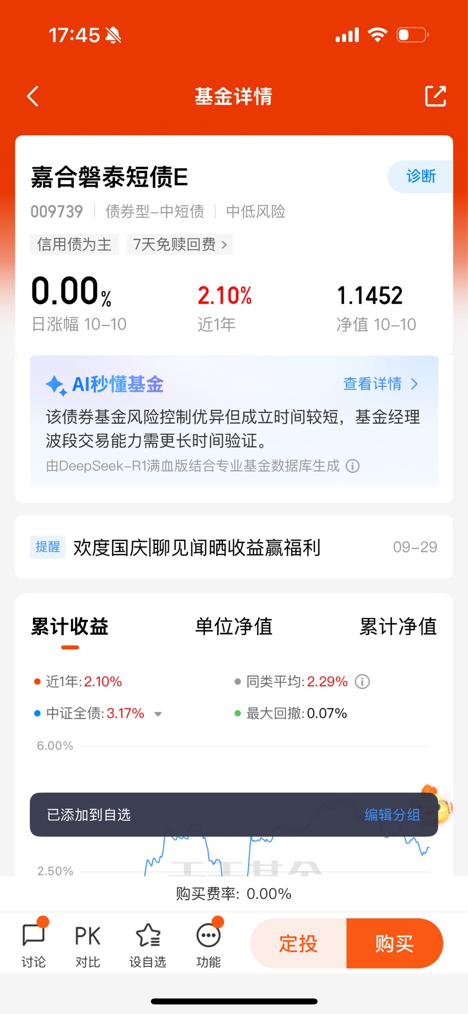 $嘉合磐泰短债E$$德邦短债A$$长城短债C$$银华安盈短债债券A$今年国庆我到