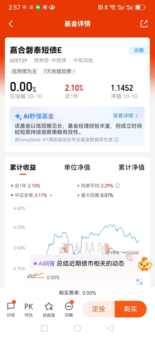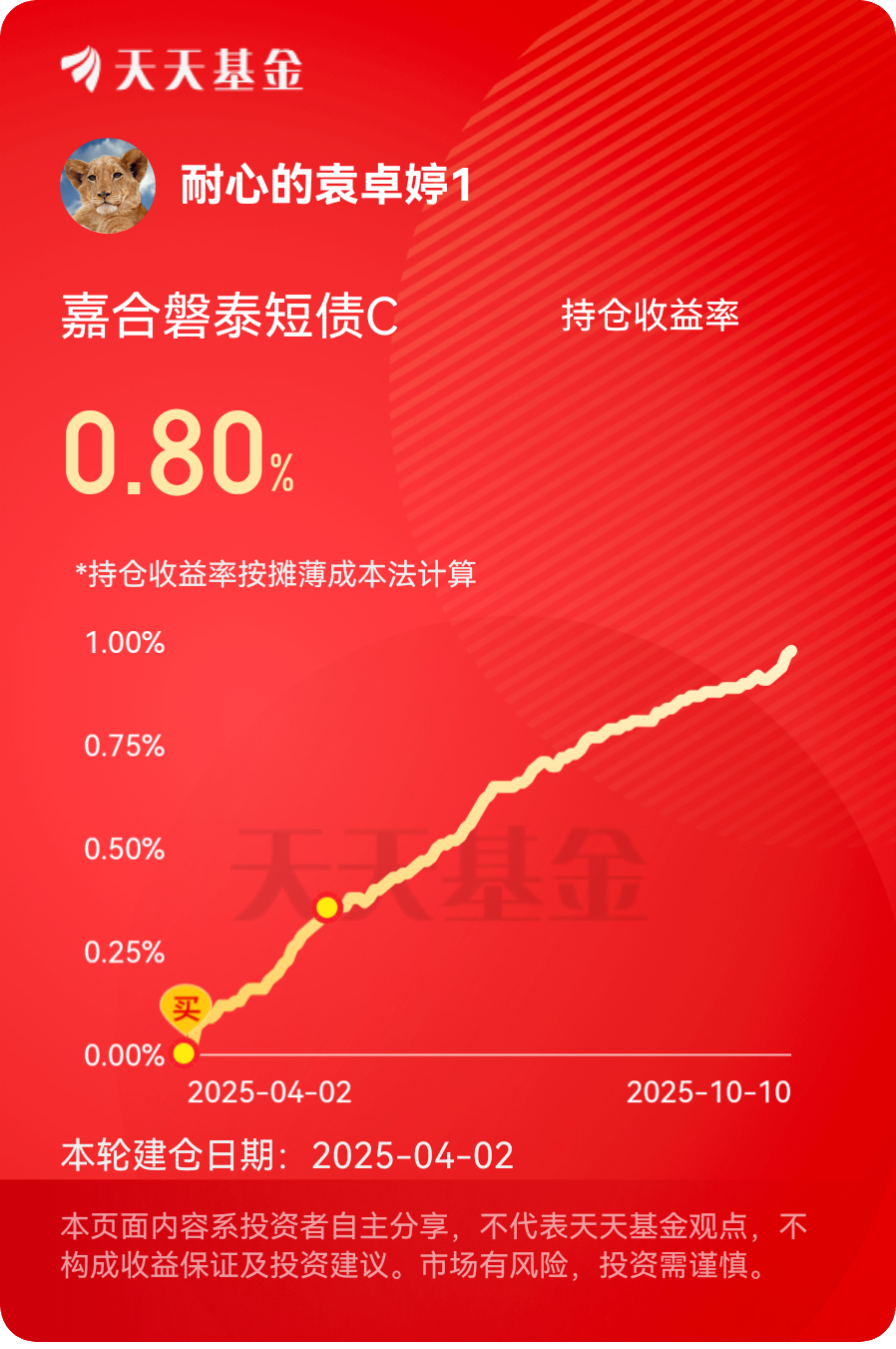 #分享国庆见闻,晒收益,瓜分好礼!# $嘉实中短债债券A$ $天弘安利短债C$ $汇添富丰润中短债E$