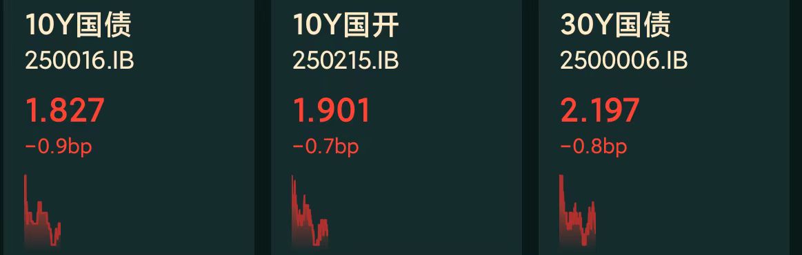 十年期国债收益率:1.827%,-0.9BP(国债收益率越跌,债市越涨)