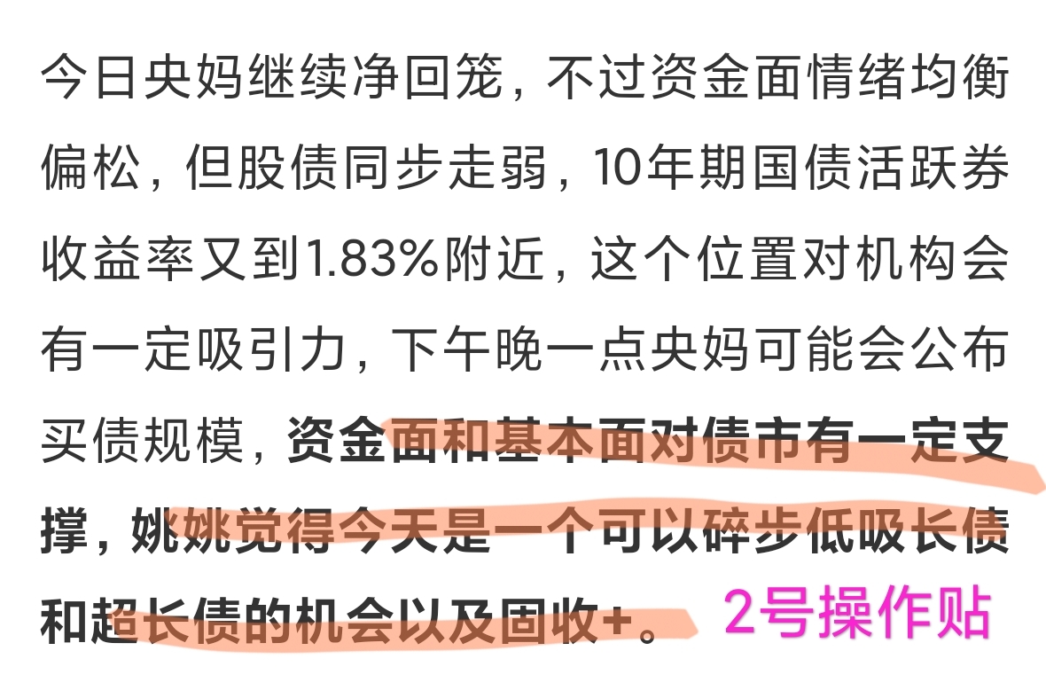 上点关注下点赞,明天一定更灿烂!姚姚每天都会实时播报债市行情,一键关注,了解债市情况噢!宝子们如果有什么疑问可以在评论区留言,姚姚看到后会为您解答,让我们一起发发发!