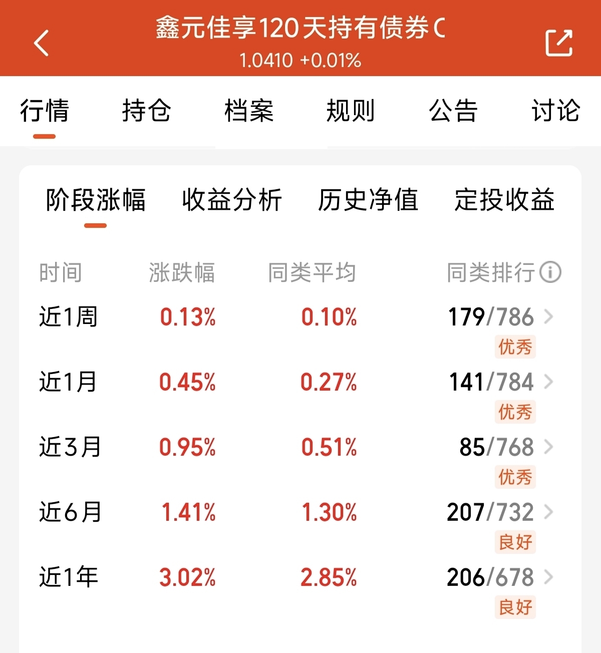 $鑫元佳享120天持有债券C$ 稳健出击!120天持有,近1年3.02%稳收!