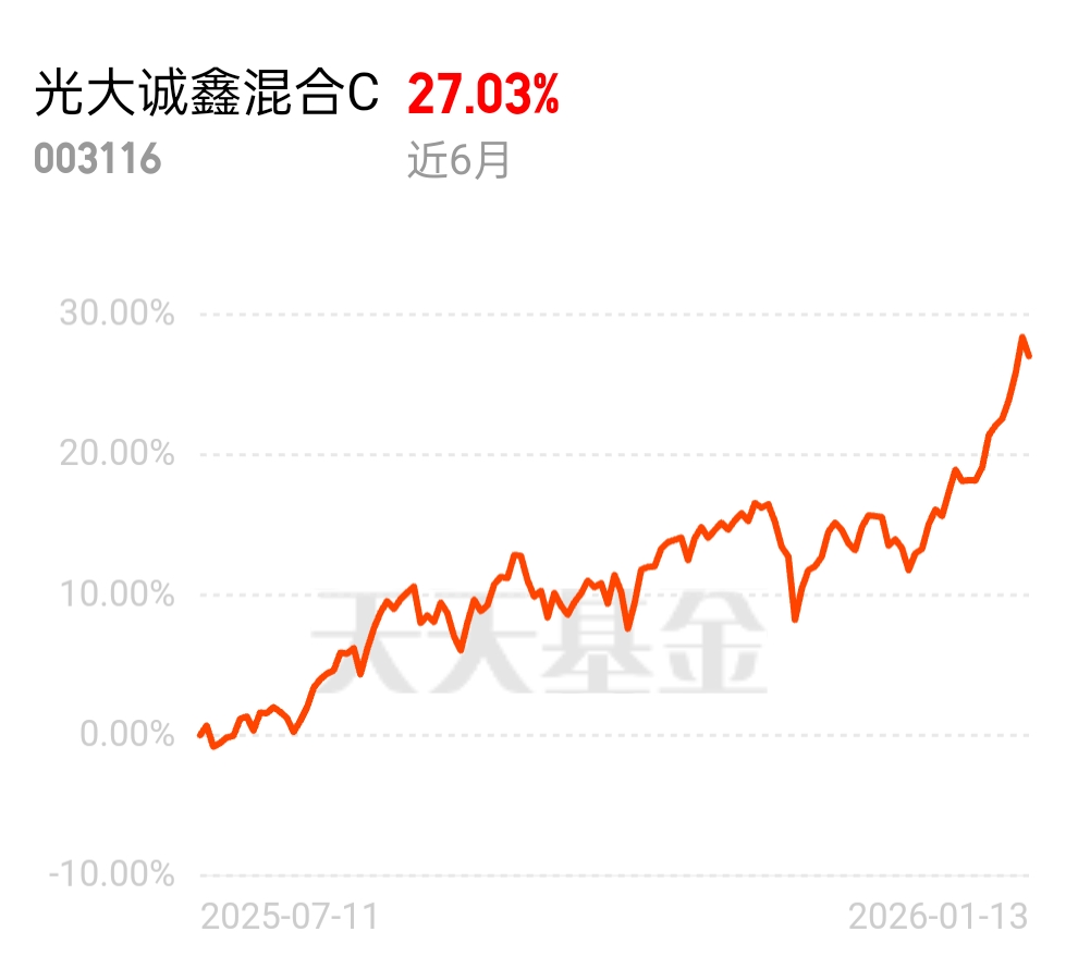 2026 年主动权益基金热度回升,大家不再盲目跟风,更认业绩硬实力。光大诚鑫混合 C 近 6 月 27.03% 的收益很能打,持仓灵活调整及时,跟着专业团队走,比自己瞎琢磨强。$景顺景颐招利6个月持有期债券C$ $建信短债债券C$ $光大增利收益债券A$