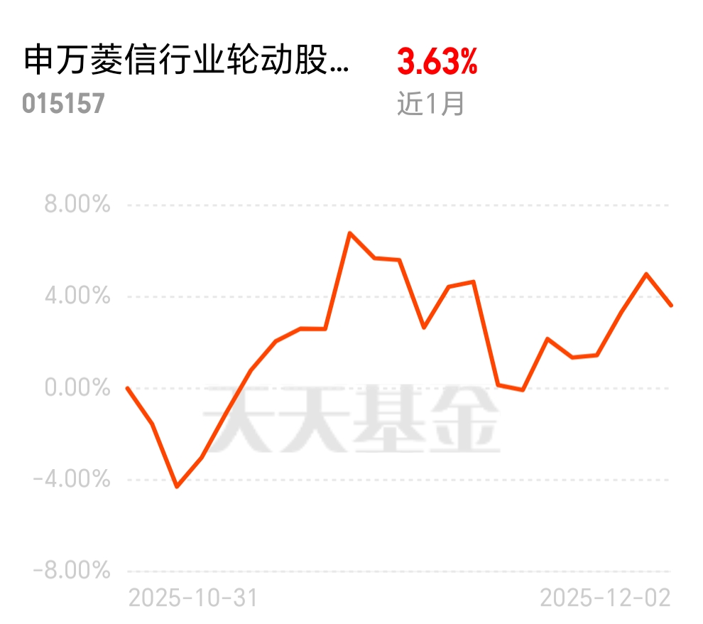 宏观政策持续宽松,降息预期支撑有色板块,今天继续上行领涨。申万菱信行业轮动 C 重仓紫金矿业等优质标的,近 1 月跑赢 90% 同类,夏普比率优于 97% 同类,回撤控制超 90% 同类,值得持有。