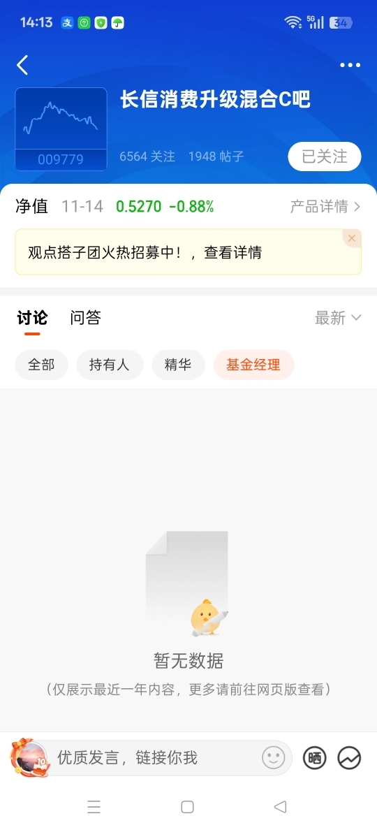 现怎么练着基金经理都不敢说话了 ,是怕丢人,还是脸你们自己斗觉得面目无光呢?暂无数据。放眼全班基金,就数你们长信最牛逼