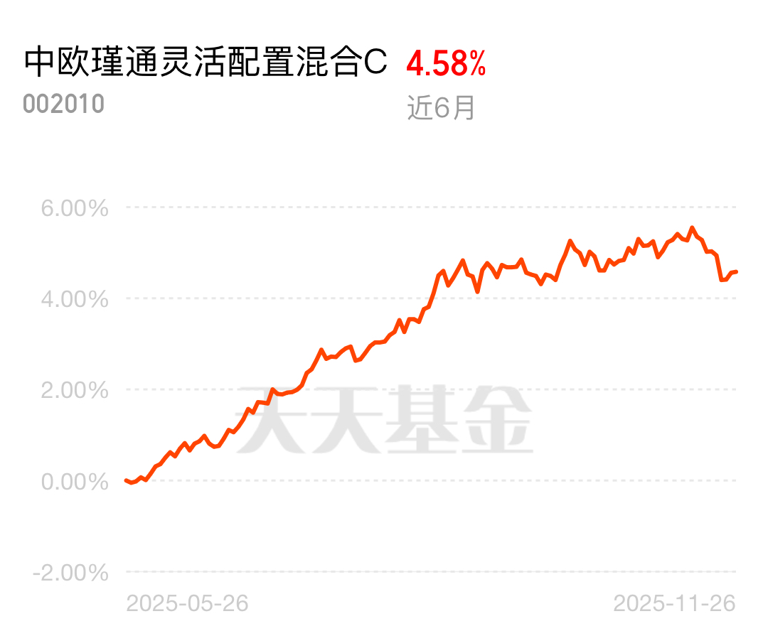 万科债引发的连锁反应让纯债基金压力倍增,信用债持仓多的更是频频受冲击,市场波动加剧。中欧瑾通灵活配置混合C近6个月涨4.58%,连续上涨不停歇,“固收+”多元配置平滑波动,稳稳拿住收益不缩水。