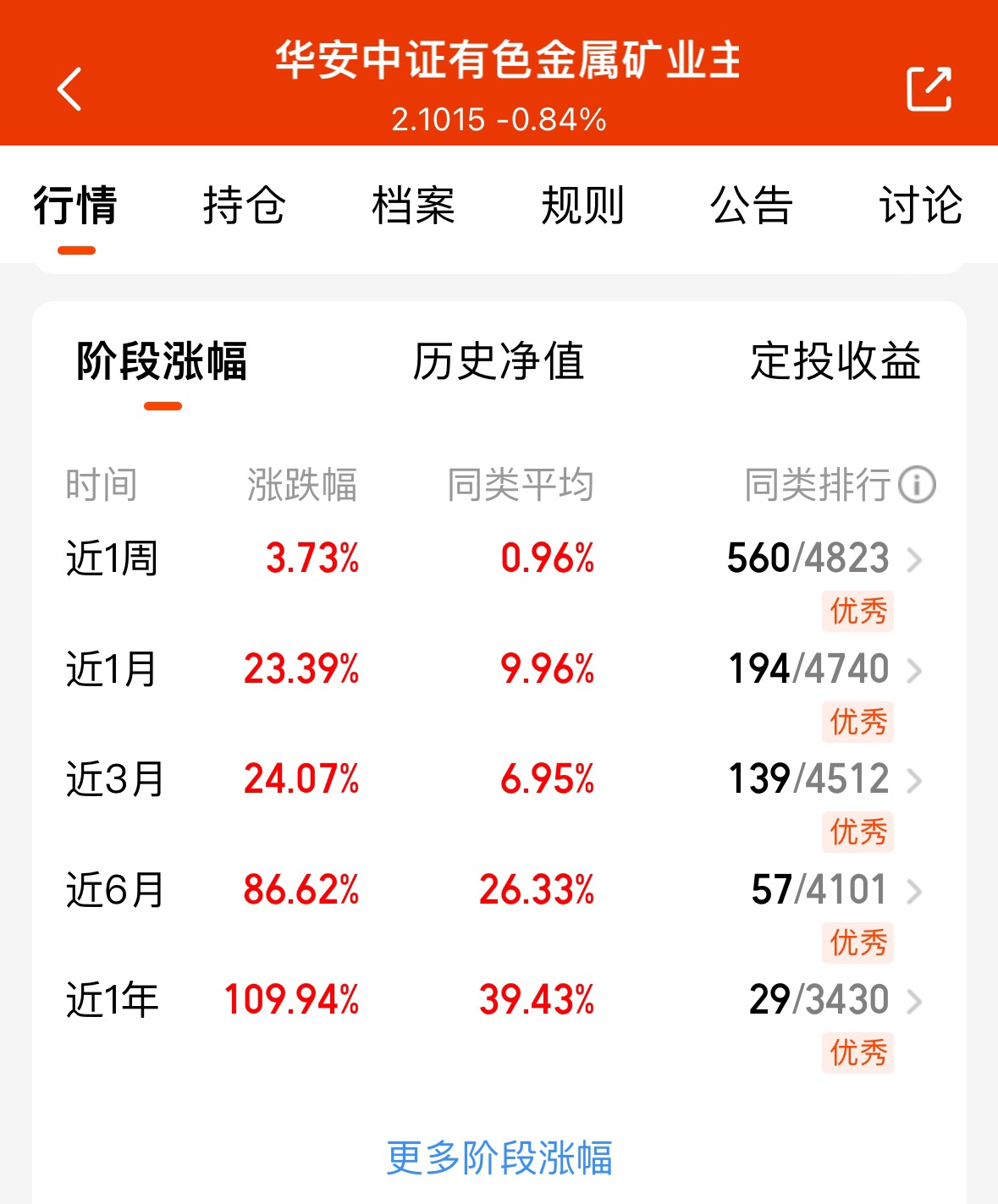 周期赛道狂飙,$华安中证有色金属矿业主题指数发起式C$近6月涨86.62%,政策
