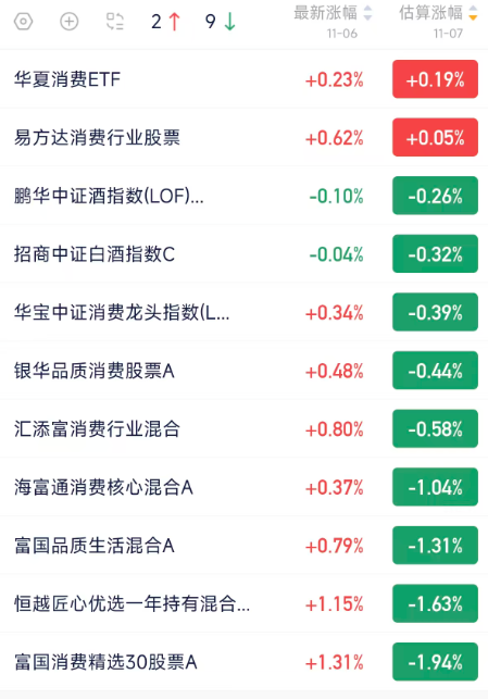 指数涨跌幅:消费指数微跌 0.004%,白酒指数下跌 0.22%
