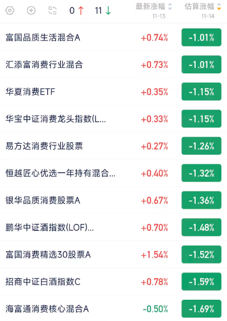 消费行业基金估值盘后检阅,早知基金涨跌,安心度周末