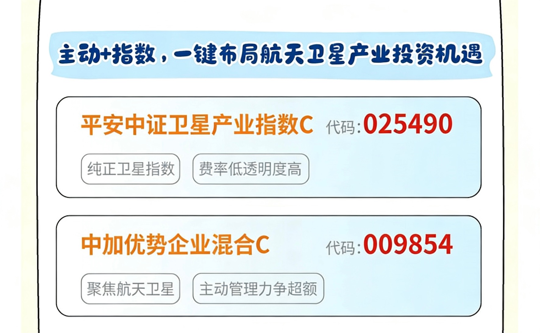 2025年下半年,商业航天这个词突然就火了。刷财经新闻,每天都能看到“卫星互联网星座组网完成”“民营火箭成功回收”的消息,身边的投资群里,大家也都在讨论哪只股票会成为下一个十倍股。坦白说,我确实心动过,但最终还是忍住了没有立刻下手,而是把中加优势企业混合C(009854)和平安中证卫星产业指数C(025491)这两只基金放进了我的重点观察清单里。不是我胆小,而是过去几年的投资经历告诉我,越是热门的赛道,越需要保持冷静。