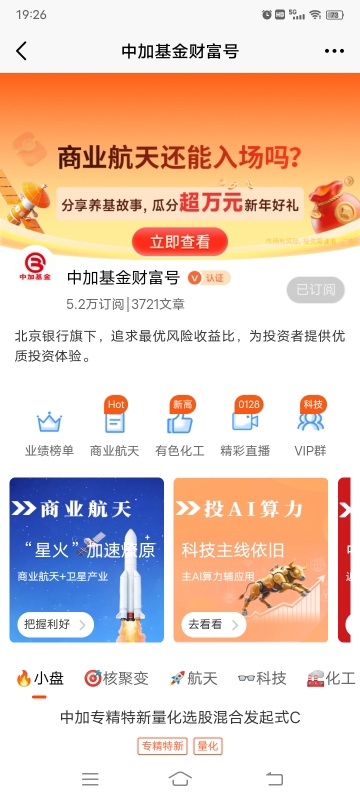 #太空投资飞天日记# 打铁趁火旺,追风趁春潮。当下的商业航天与小盘成长赛道,正像铁匠炉里烧得通红的铁料,恰逢“新质生产力”政策东风劲吹,正是趁热锻造的好时机。先看$中加优势企业混合C$ ,近一年89.23%的涨幅,远超沪深300的24.54%,就像铁匠抡起大锤,在铁料最滚烫时一锤接一锤地落下,把小盘成长股的爆发力彻底打了出来。它专注小盘成长股投资,短期收益突出,虽然16.27%的最大回撤意味着波动不小,但在当下春躁行情里,这种进攻性恰好能抓住市场热度,正如打铁时趁铁料未凉,狠狠锤出想要的形状。再看平安中证卫星产业指数C瞄准的商业航天赛道,这更是政策风口上的“硬核铁料”,随着我国航天发射频次稳步提升、商业卫星应用场景持续拓展,这条赛道正从政策红利走向产业落地,就像铁匠手里刚出炉的新铁器,带着滚烫的热度,未来的应用空间不可限量。把这两只产品放在一起看,中加优势企业混合C是“趁热猛攻”的锤,主打小盘成长的弹性;商业航天则是“淬火定型”的料,依托硬科技的长期逻辑托底,一攻一守,恰好对应打铁时“猛攻”与“定型”的节奏。眼下市场正处在春躁行情中,两会前对新质生产力的政策预期还在持续升温,资金对硬科技和成长股的追捧热度不减,此时布局这两条赛道,正是“打铁趁热”的绝佳时机。中加优势企业混合C能借助小盘成长的弹性,吃到行情上涨的红利;平安中证卫星产业指数C则能依托商业航天的长期逻辑,在市场波动时提供更扎实的支撑。当然,打铁也讲究分寸,中加优势企业混合C的波动提醒我们,高收益伴随高风险,适合能承受短期波动的投资者;而商业航天赛道虽前景广阔,但产业落地仍需时间,需要我们有足够的耐心持有。在这个春潮涌动的市场里,既要敢趁热度猛攻,也要懂适时淬火稳守,就像铁匠手里的锤与水,在滚烫的行情中打出属于自己的投资利器。#CPO逆势爆发 上车吗?# #白银一度跌超8% 贵金属巨震是何信号?# #多重利好引爆白酒股!行情能否持续?# @中加基金