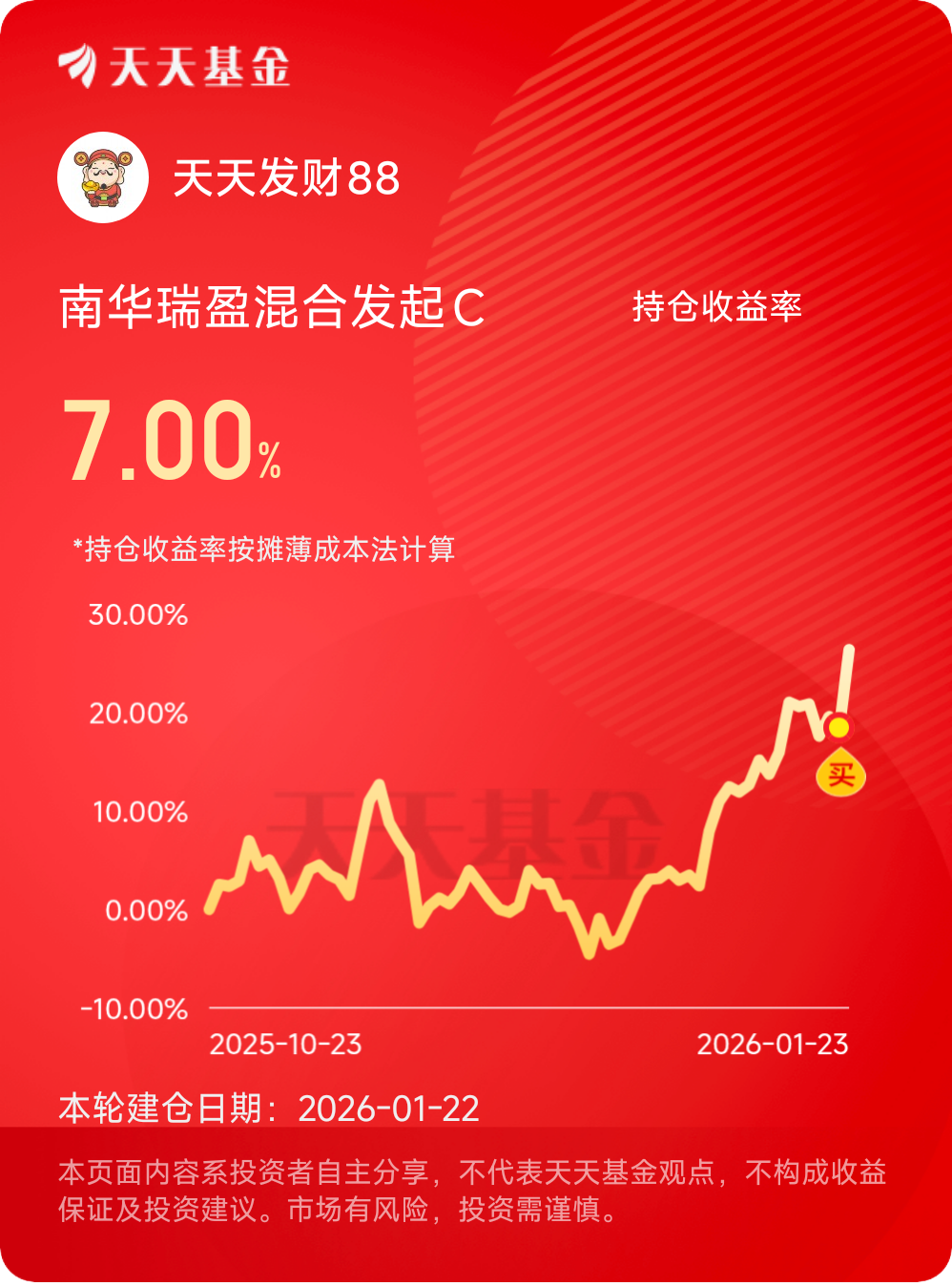 $南华瑞盈混合发起C$ 近月涨19.11%,今日再涨6.92%。#晒收益#