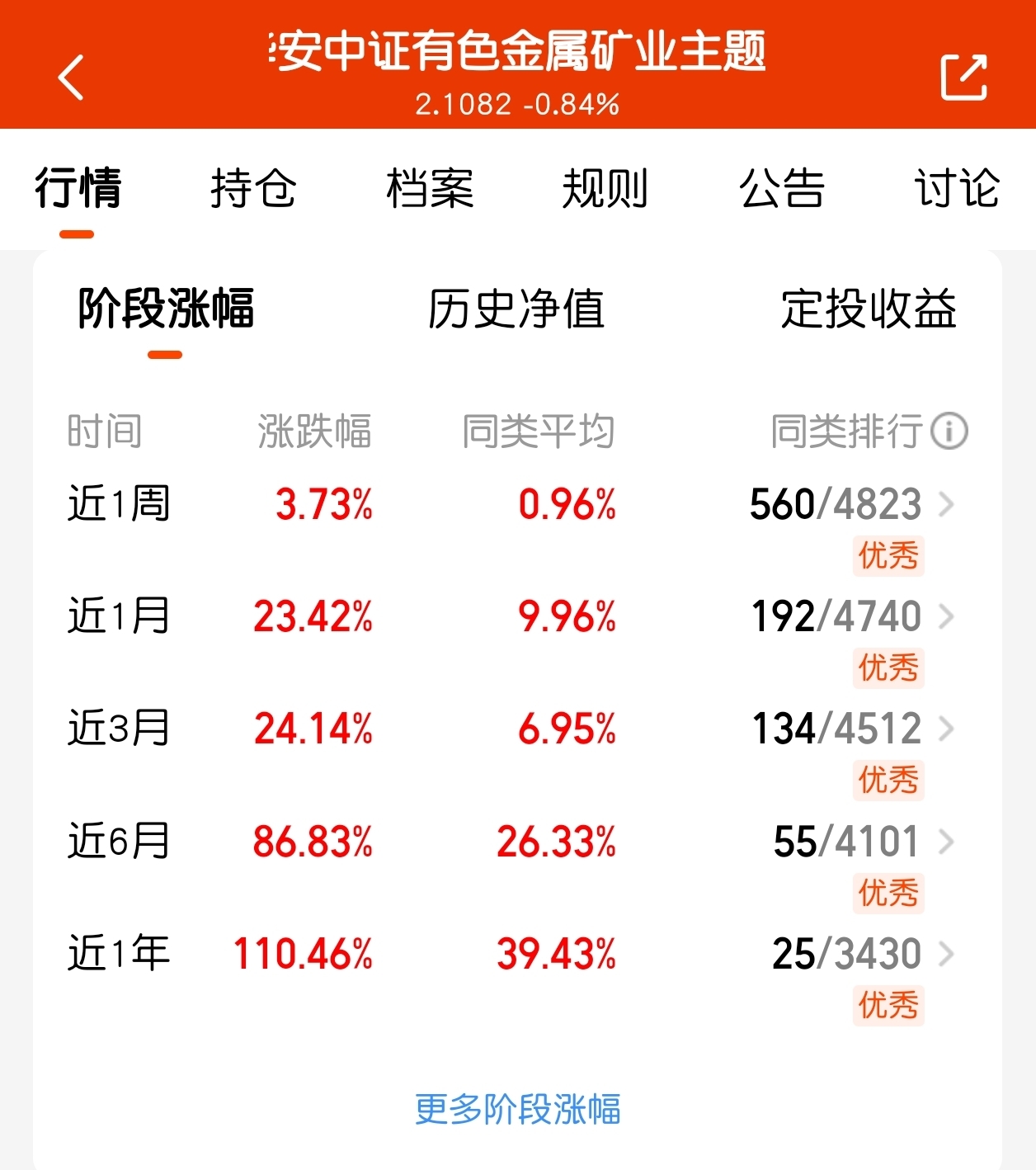 半年拿下86.83%收益,华安有色矿业A专攻有色赛道,不搞杂乱配置,踏实又安心$