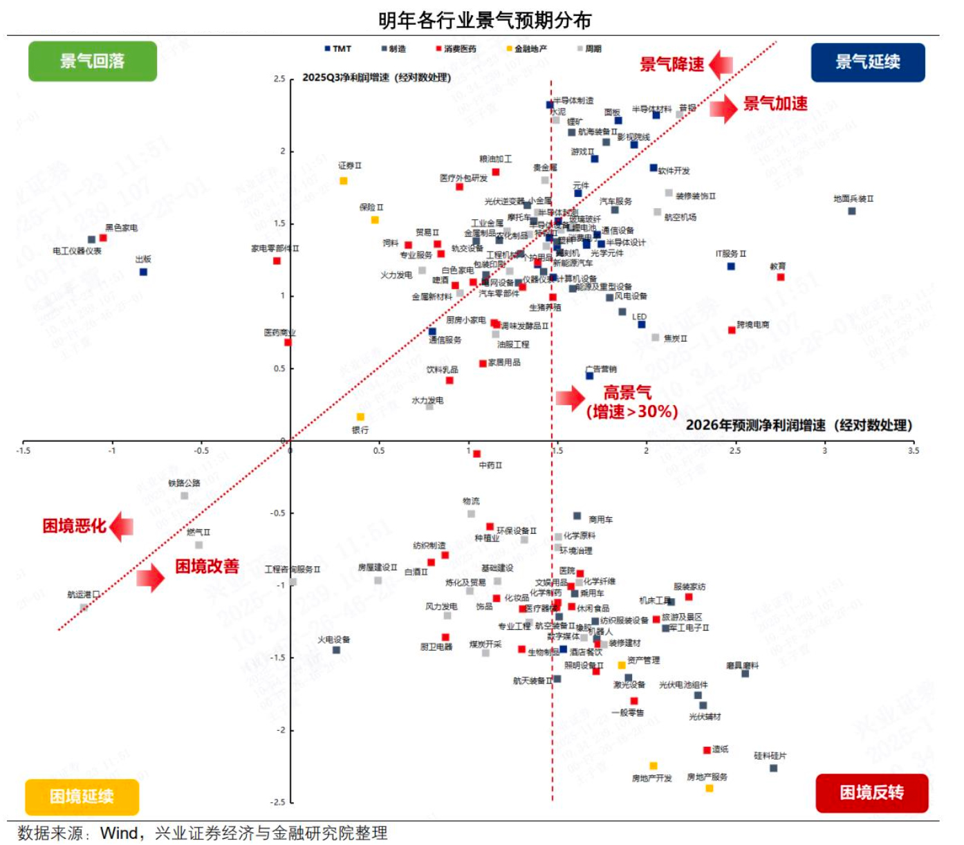 那么,哪些行业明年有望处于高景气,且净利润预期增速靠前呢?