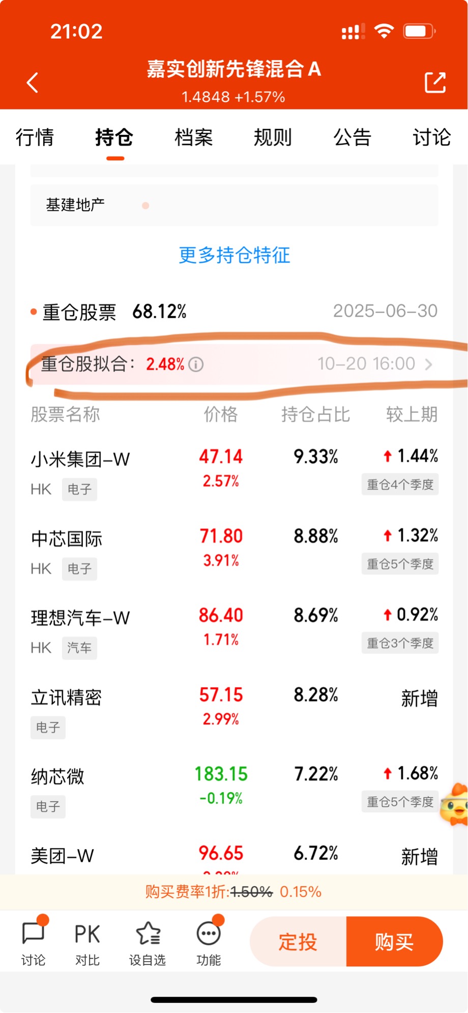 为什么今日嘉实创新先锋混合A1的净值单日涨幅和重仓股拟合增长不一致?