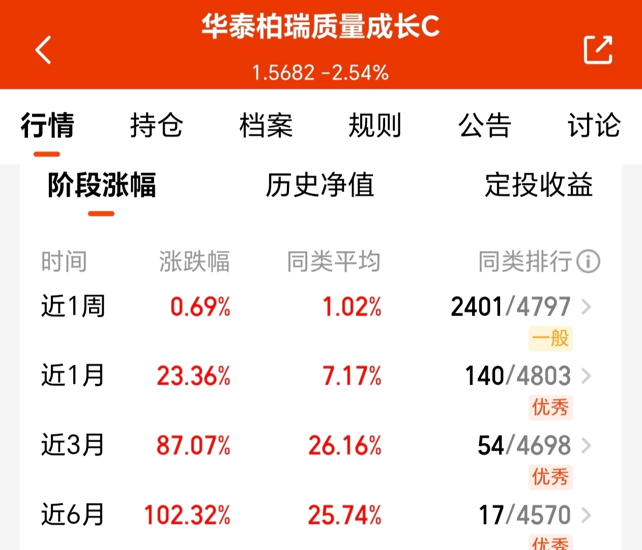 全球都在押注AI,咱们的产业链优势别人比不了。CPO调整不必悲观。说起收益,$华泰柏瑞质量成长C$ 近一年翻倍,真香!