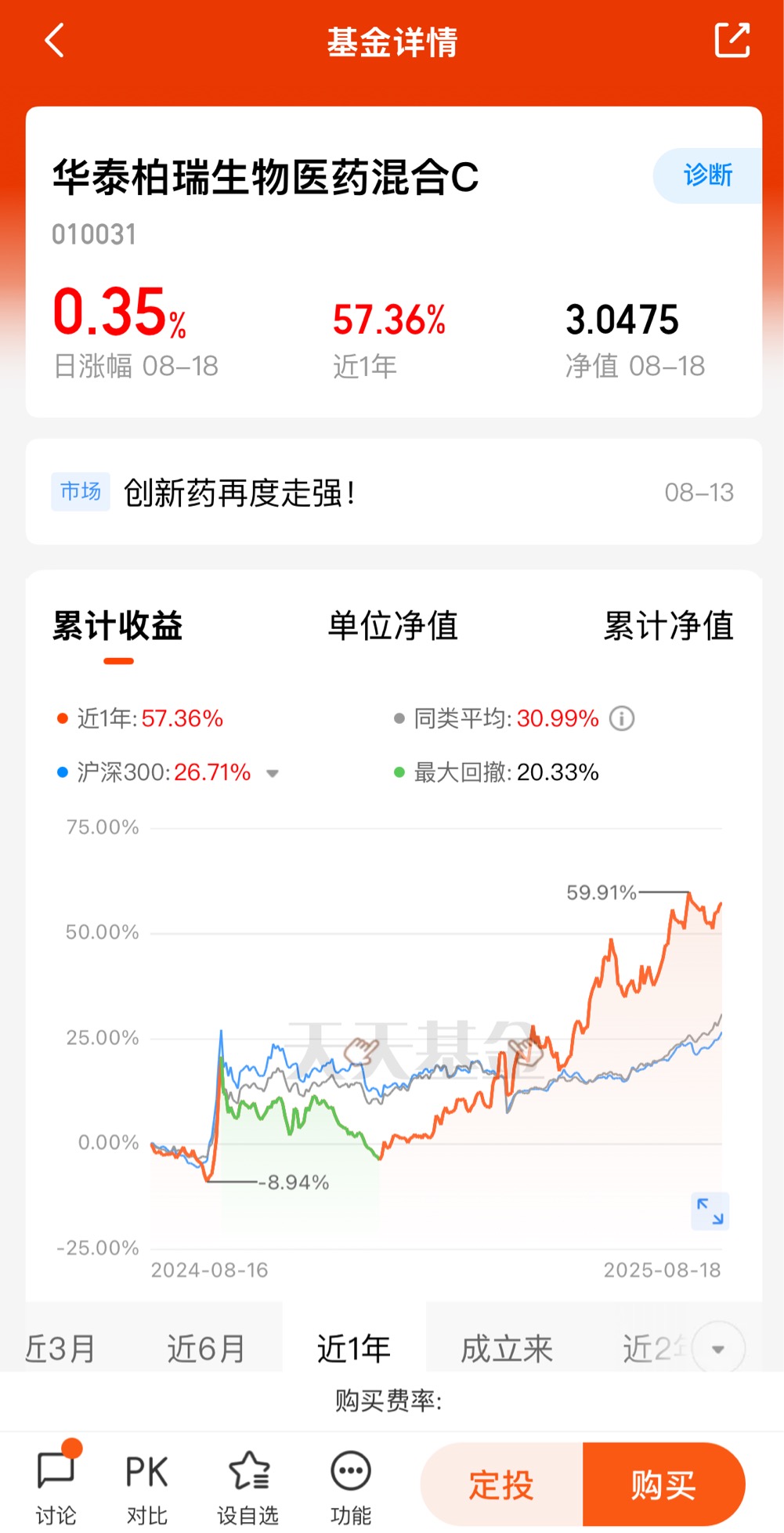 华泰柏瑞生物医药混合聚焦“政策边际缓和+创新药井喷”,重仓股覆盖创新药全链条:前十大重仓股包括恒瑞医药(创新药龙头)、药明康德(CXO全球龙头)、泽璟制药(小分子创新药)、百利天恒(ADC领域)、艾力斯(肺癌靶向药)等,涵盖研发、生产、出海等关键环节。港股通标的增强弹性:通过港股通配置康龙化成、药明生物等中概药企,捕捉估值修复机会。2025年港股创新药板块受益于美联储降息周期,流动性改善预期强烈。