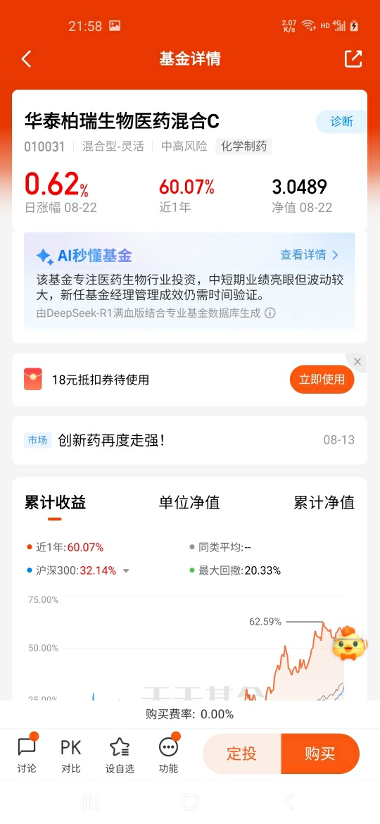 #创新药赛道持续活跃 行情空间有多大?# $华泰柏瑞生物医药混合C$ 下半年继续看好创新药,我交易不频繁,也不想研究个股,打算继续买入一些创新药基金如: $华泰柏瑞生物医药混合C$ ,这类产品分散风险,又能吃到板块行情,而且流动性好、成本低,是最省心的选择。